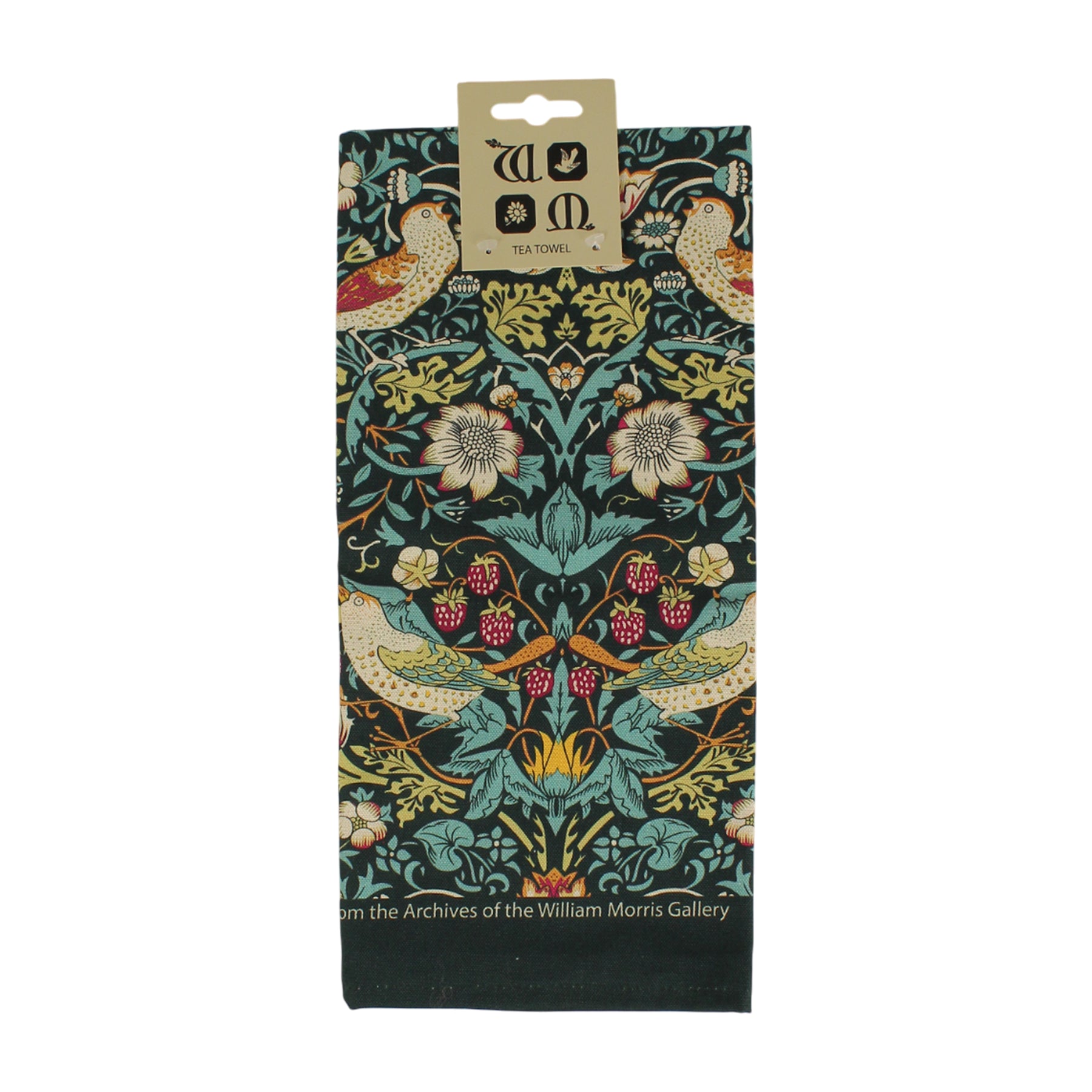Brighten up your kitchen with this beautiful tea towel, featuring the iconic William Morris Strawberry Thief design on a dark green background. The timelessness of this design is guaranteed to be a conversation starter, you'll never want to use it, so it can always be on display.
