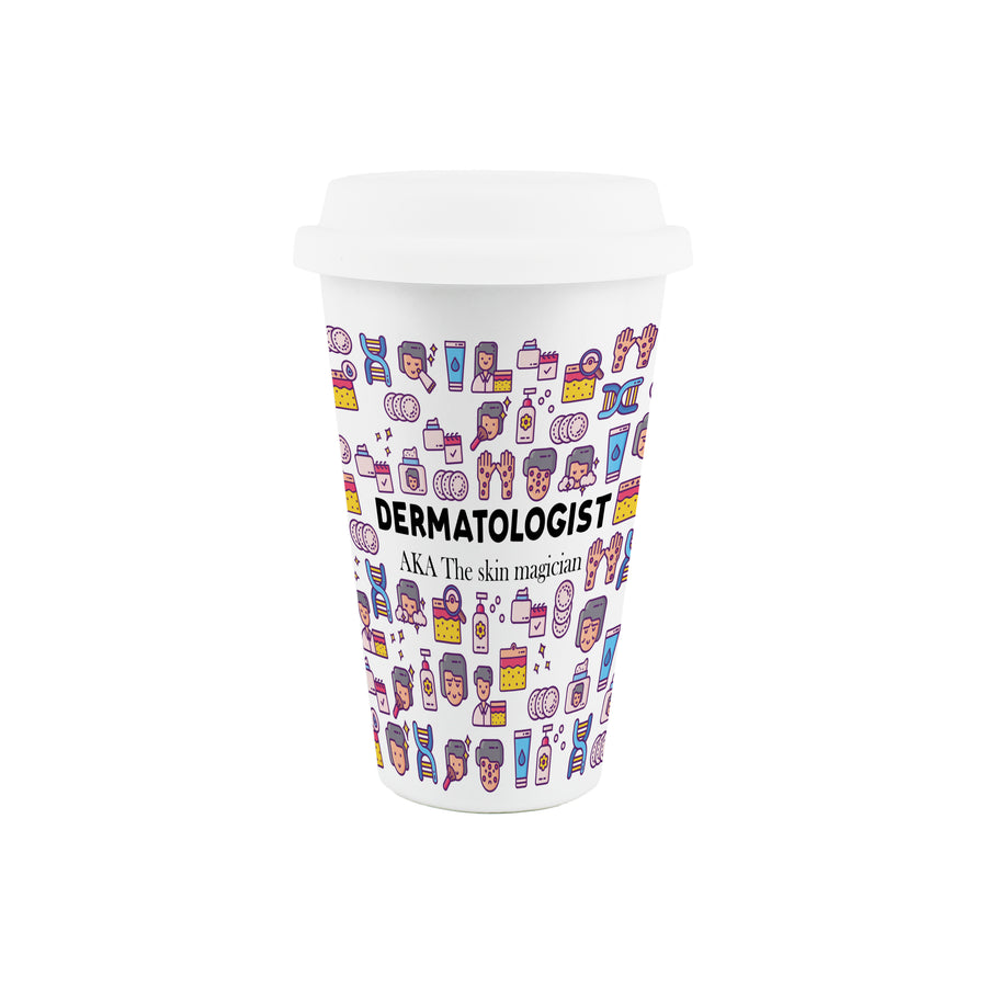 This illustrated white ceramic travel mug is a perfect gift for any dermatologist you know. Featuring a skin care themed print, along with text quoting "Dermatologist - AKA The skin magician" on the front, this is sure to be their mug of choice when they get the moment for a tea break between patients!