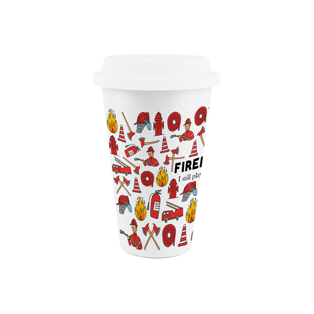 This travel mug is a perfect gift for the fireman or firewoman in your life! Featuring a print inspired by the work of this incredible national service all around the flask and the text "Firefighter - I still play with fire trucks" on the front. This will be sure to make their hot drinks taste even better (and add a chuckle to their day) in between putting out fires!