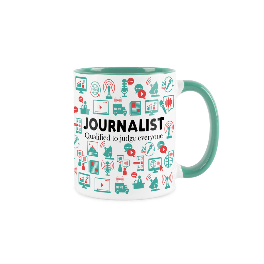 This trade-themed mug is a perfect gift for the journalist in your life! Featuring a fun interviewing inspired print all around the mug and the text "Journalist - Qualified to judge everyone" on the front, this will be sure to make those hot drinks taste even better during those long days of questioning to find out the next big story!