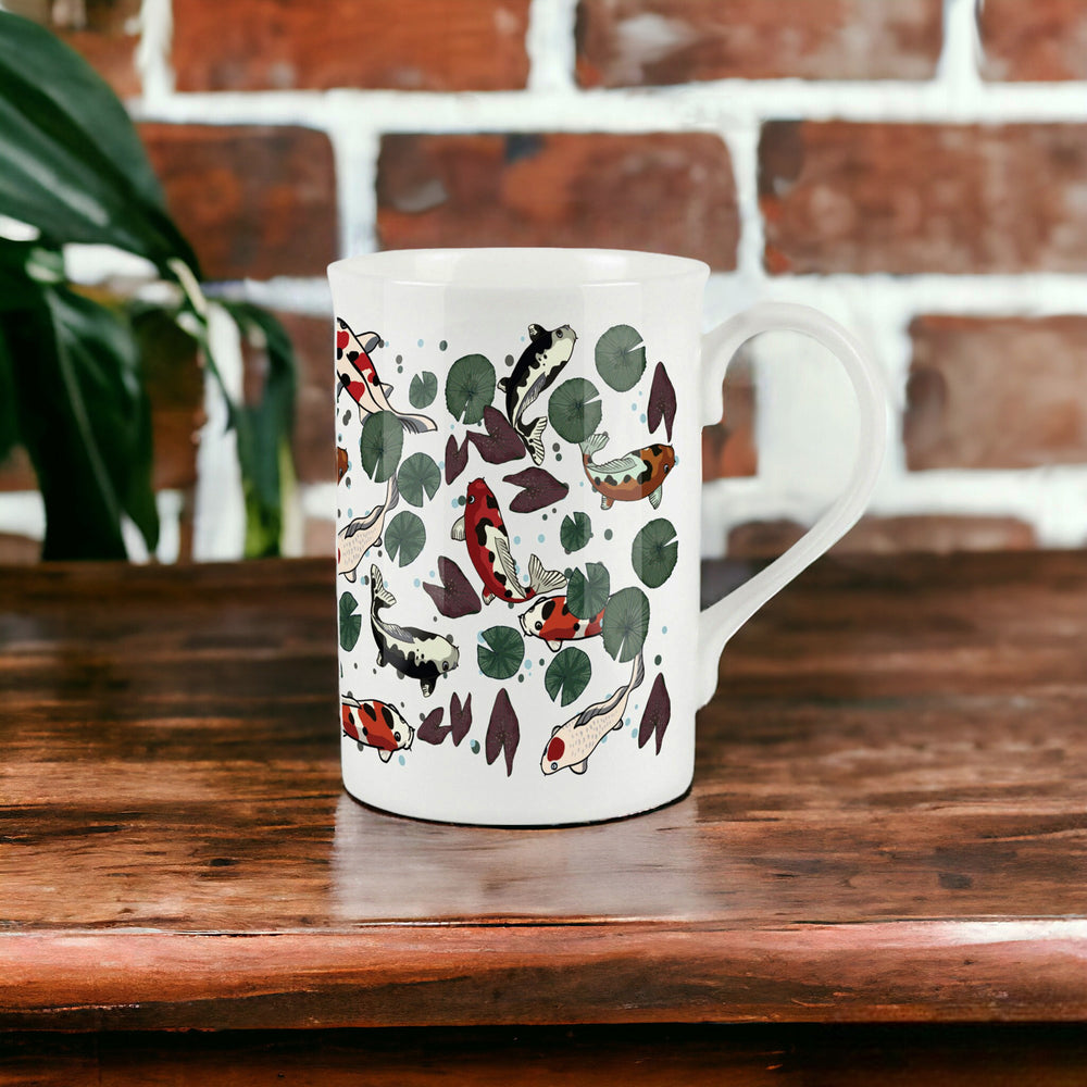 This stunning brightly coloured koi fish printed mug is guaranteed to brighten your hot drink and your kitchen while offering a drinking experience like no other. The bone china is perfectly crafted with a gentle lip, making every sip a joyous one.