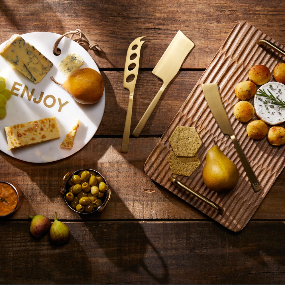 You need the right weapon to be ready to take on the strongest of cheeses, and this magnificent set of cheese knives looks the most fitting for the job! Made from brass-coloured stainless steel, these knives will bring a sense of elegance to any function.