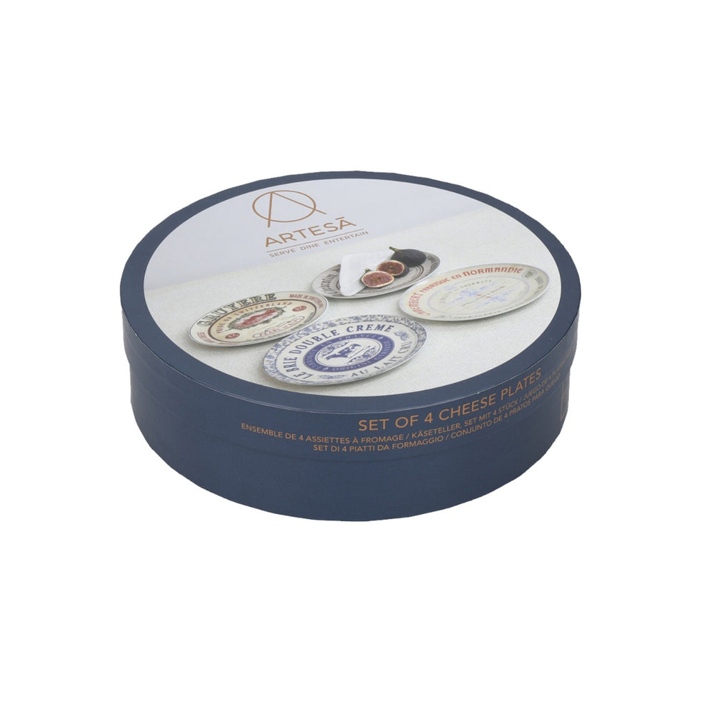 Add a touch of vintage class to your serveware with this set of Artesa cheese plates from KitchenCraft. Perfect for indulgence, you can present mouth-watering cheeses to guests (or just have to yourself as a treat!). With stunning French 'cheese label' designs (Chevrotin des Aravis, Gruyere, Camembert and Le Brie Double Crème), these plates will take pride of place on any tabletop.