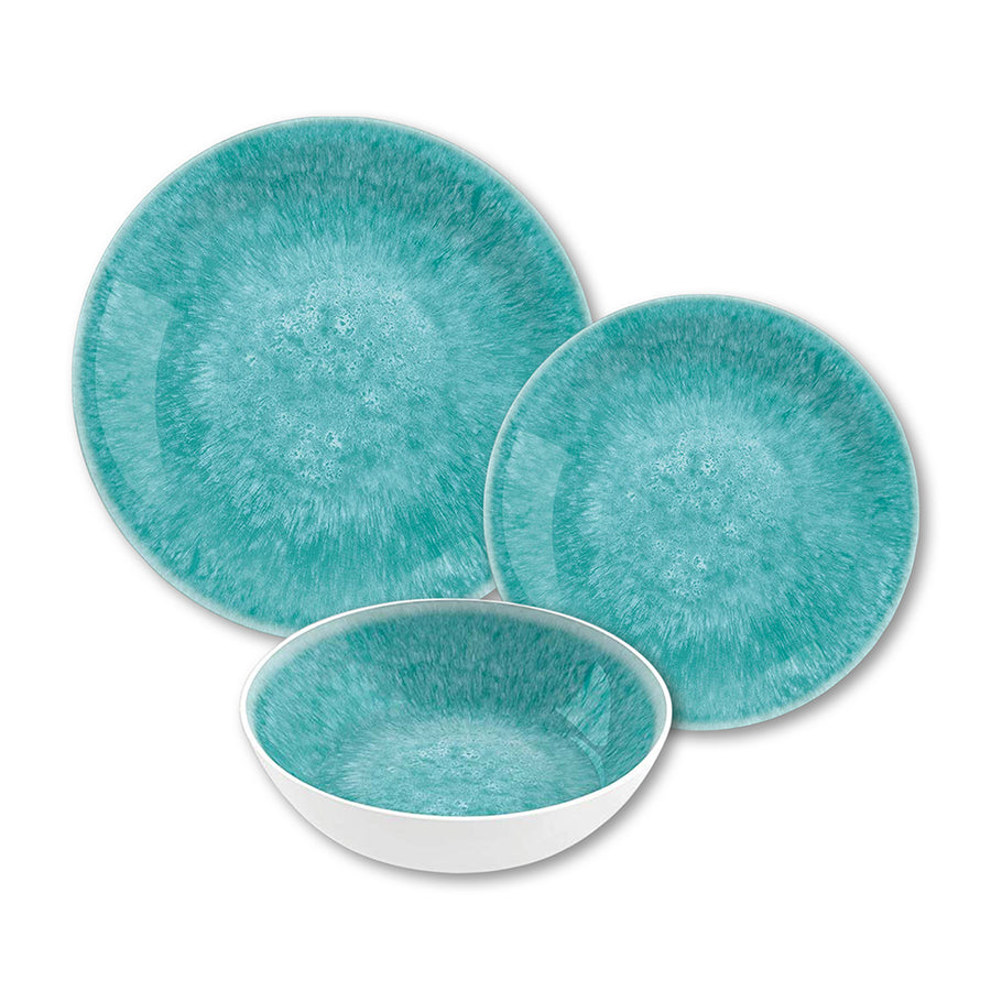 This beautiful aqua dinnerware set includes dinner plates, side plates and low bowls - perfect for any adventurous and outdoor loving household. With its break resistant features, it is ideal to either use when camping or for a romantic, alfresco dinner.
