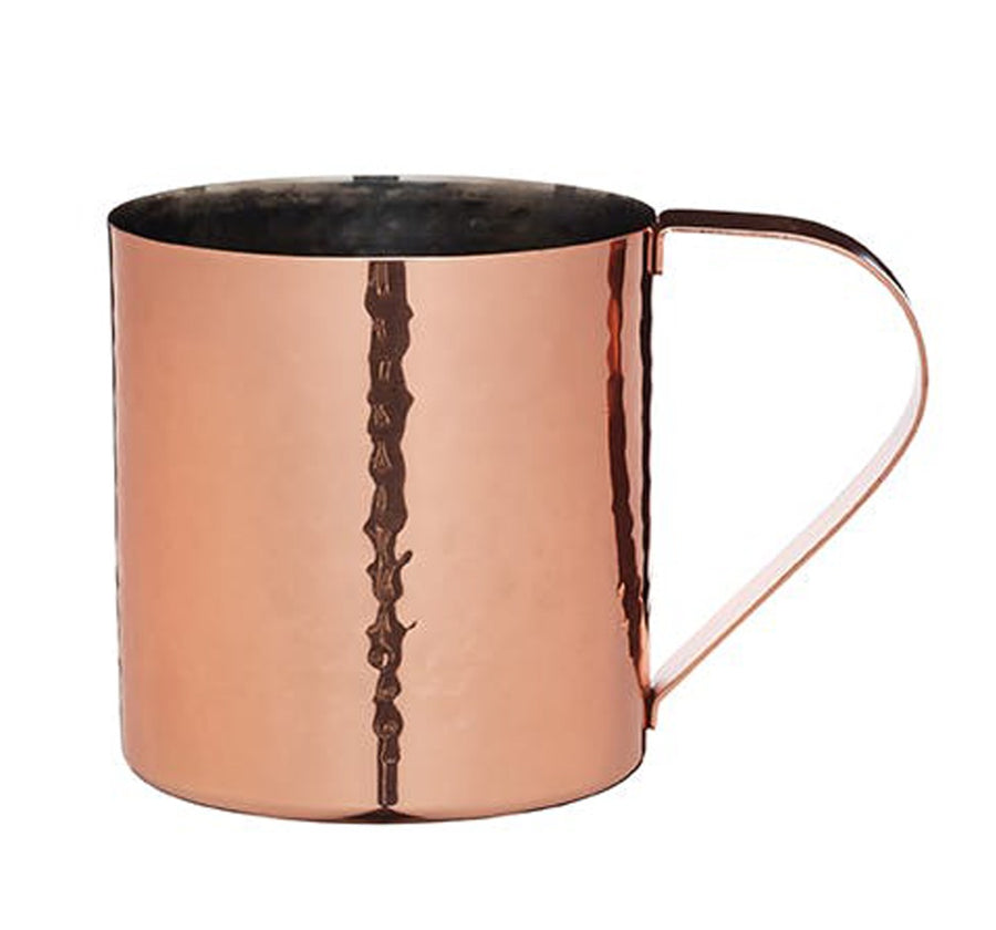 The perfect vessel for cold beverages! Drink in style from this hammered stainless steel Moscow mule mug, with a contrasting stainless steel interior, originally used for the famed cocktail of vodka, ginger beer and lime.