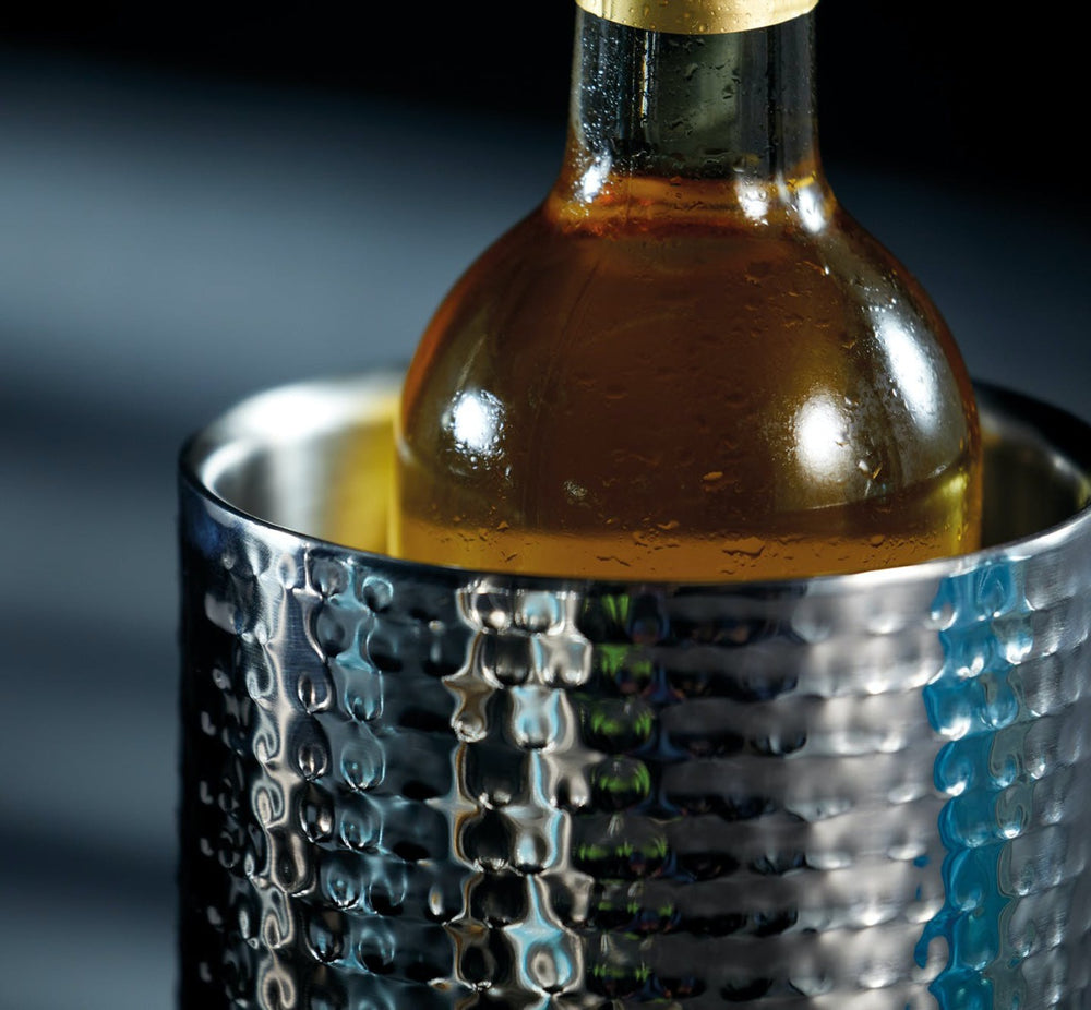 Give your cabernet and chardonnay pride of place on dining tables and bars with this gorgeous double-walled, hammered wine chiller. This ingenious cooler is specially designed to keep wine exquisitely chilled for longer, so your guests can enjoy a free-flowing supply of fresh, zingy wine and conversation – all under the glow of its beautiful hammered finish.