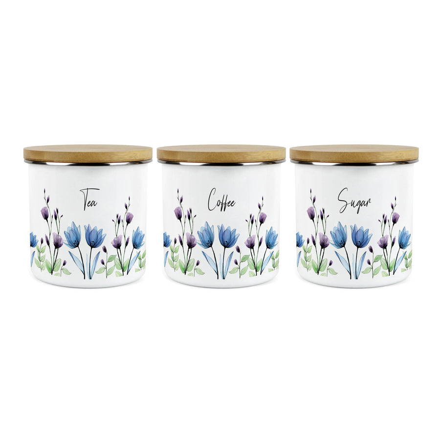 Purely Home Blooming Lovely Enamel Tea, Coffee & Sugar Canister Sets
