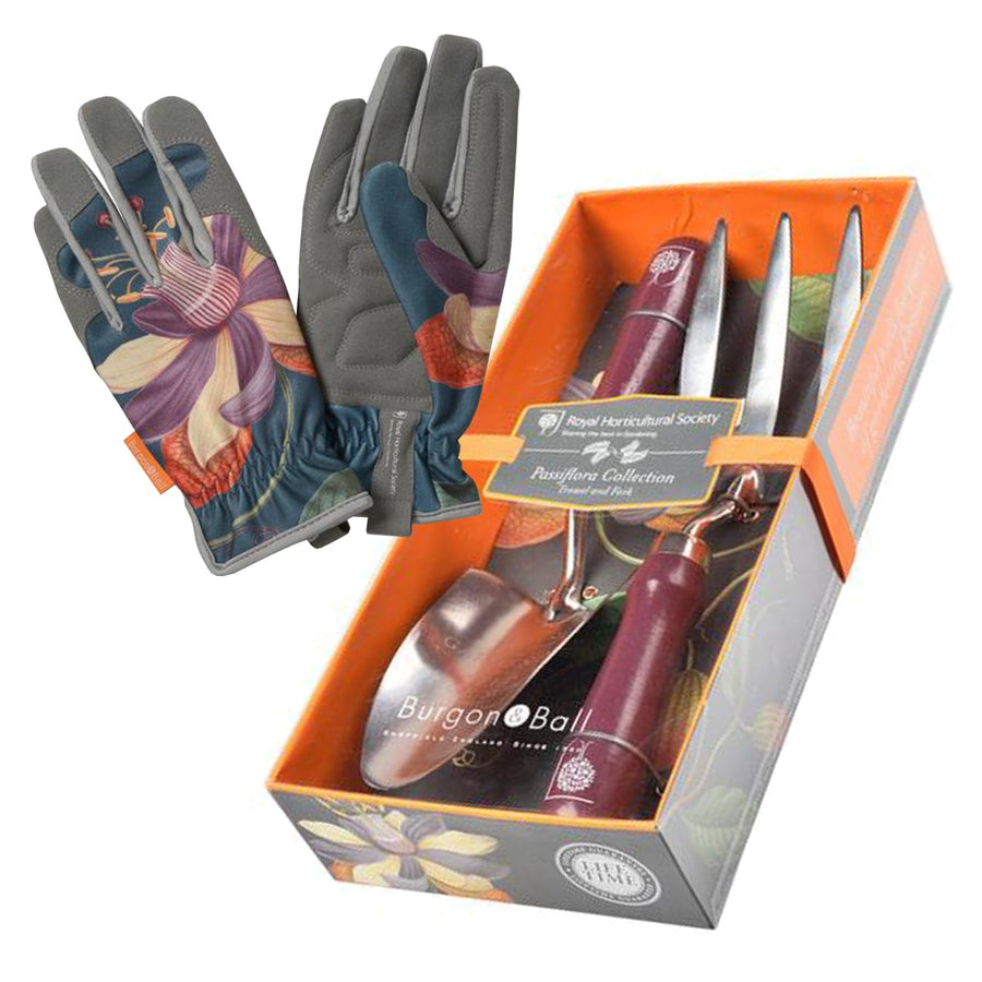 Burgon & Ball Passiflora Set - Gloves & Trowel/Fork