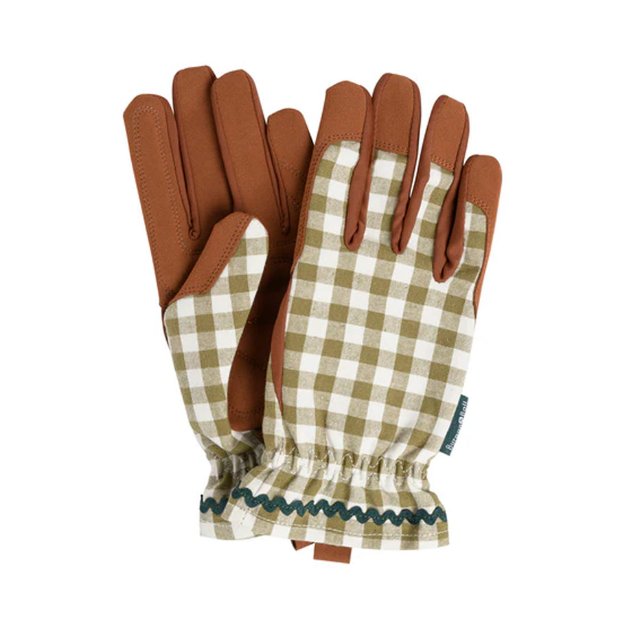 Burgon & Ball Gingham Check Gardening Gloves - Olive Green