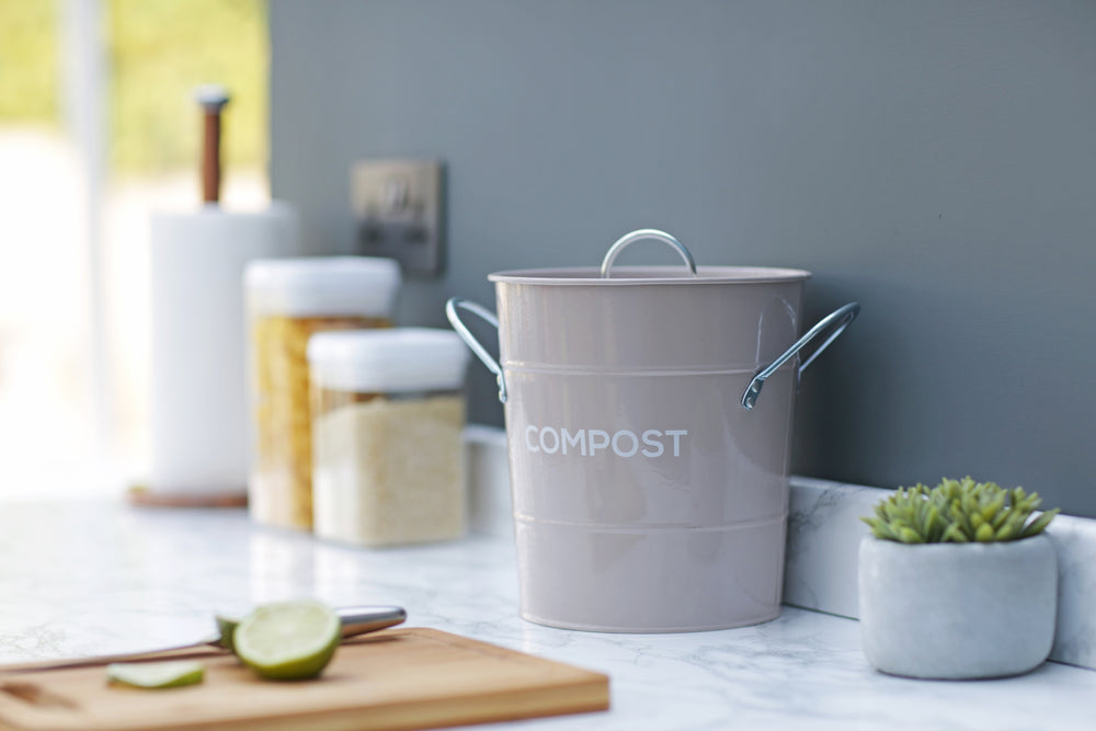 This stylish kitchen caddy will sit neatly on your kitchen worktop, to hold your food waste ready for composting!