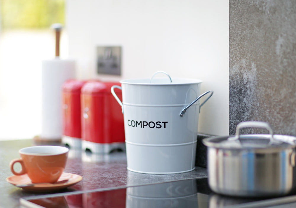 This stylish kitchen caddy will sit neatly on your kitchen worktop, to hold your food waste ready for composting!