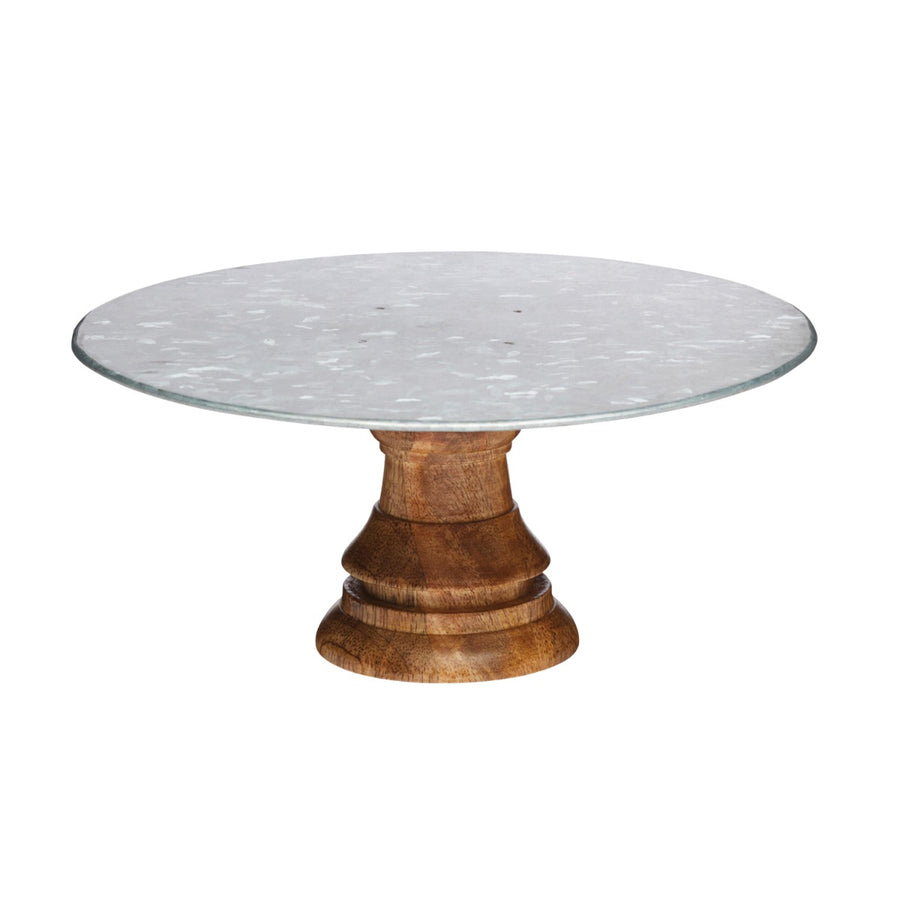This cake stand is designed to perform beautifully whilst looking smart and rustic! It’s a special and practical piece, designed in the UK and handcrafted from natural mango wood and galvanised steel. This means that every piece is unique, and it can boast a robustness far beyond most cake stands! Inspired by the trend for modern industrial chic, this round cake stand is perfect for displaying a rich gateau, cupcakes and more.