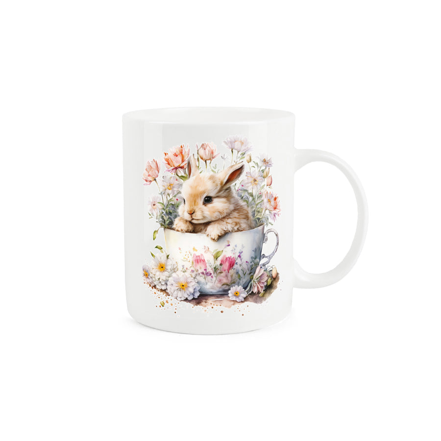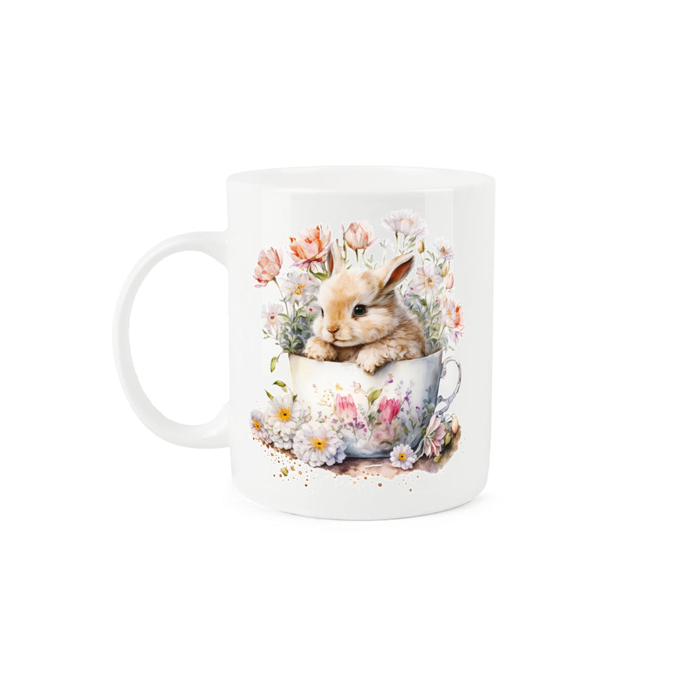 This stunning bone china mug features an adorable bunny design, hiding in a teacup filled with flowers! Lovely as a gift for friends, family or yourself, available to purchase individually or as sets of 2 or 4.