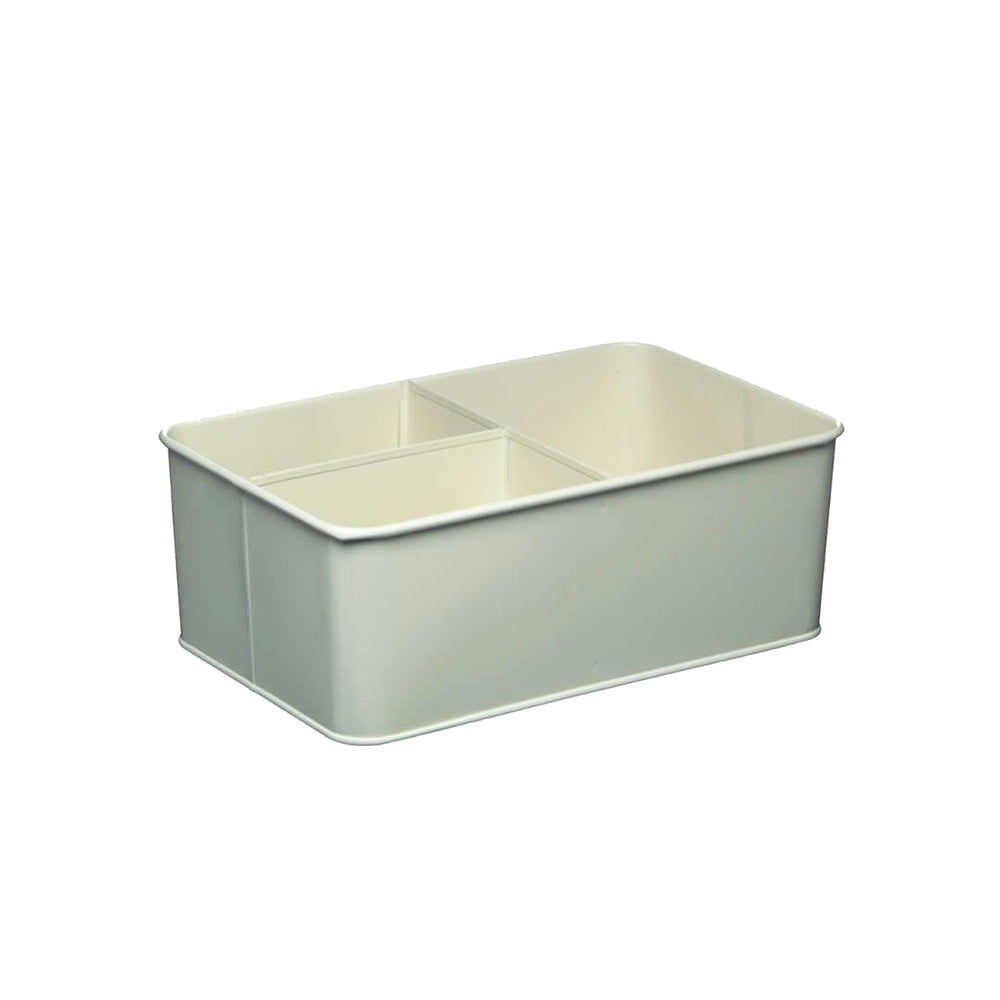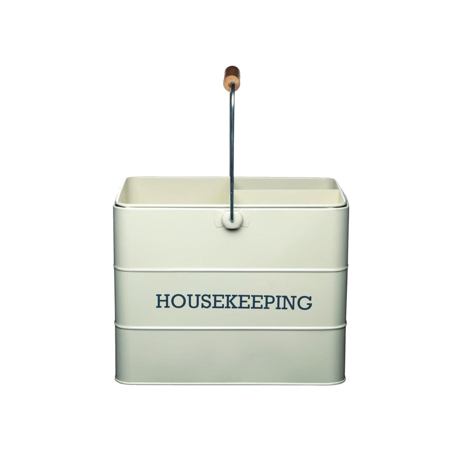 Store all your household essentials in one convenient place with this beautifully quaint Antique Cream housekeeping box. This tin features a removable tray with three handy compartments, space for cleaning bottles and sprays below, and a carry handle. Making it ideal for storing all your cleaning products, cloths, and brushes, and for carrying them around your house whilst spring cleaning!