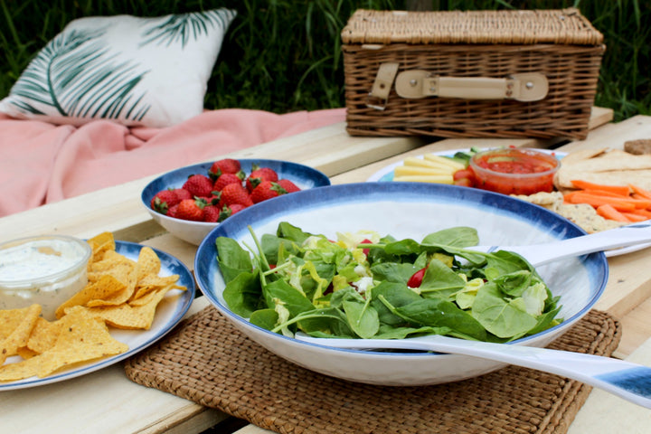 Help make your summer dining and parties extra special with our Coastal inspired melamine salad servers. With its simplistic blue and white design, these beautiful non chip and break resistant serveware pieces are perfect for outdoor and indoor use.