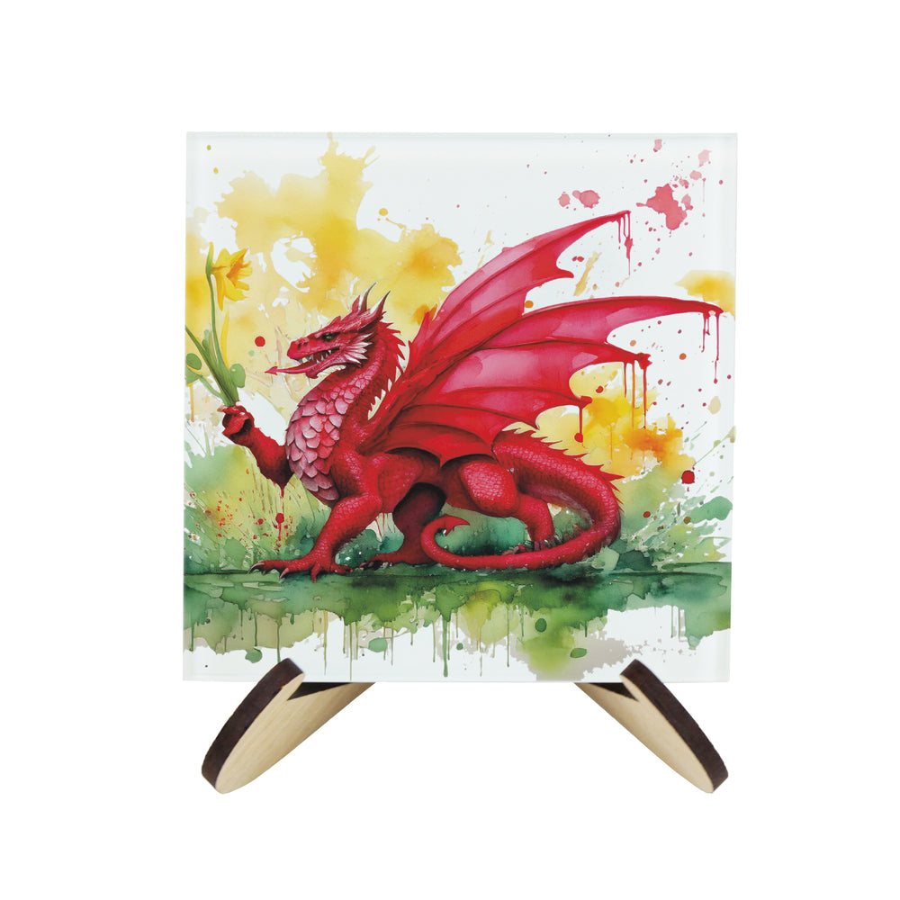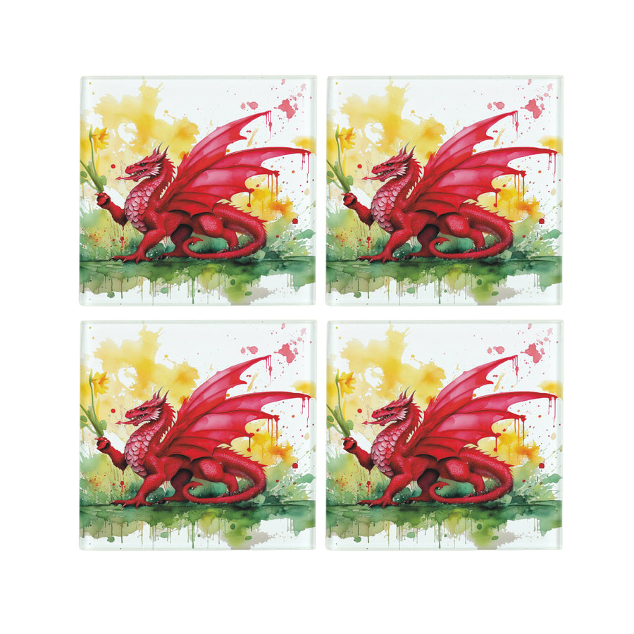 Displaying the national flower and the patriotic red dragon of Wales, this set of glass coasters explodes with colour! An ideal gift for your Welsh friends and family. Available to purchase with a wood-effect stand!