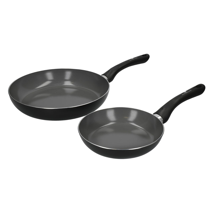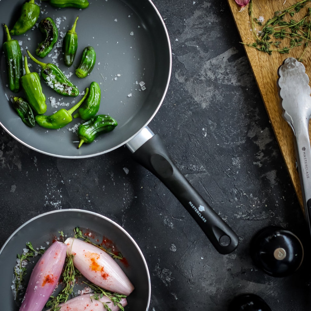 An innovative design - built to last! This non-stick frying pan set from the MasterClass range has been formed using 70% recycled aluminium, making it perfect for any eco-conscious individual. With scratch-resistant ceramic coating, you need little to no oil to cook your food! Suitable for all hob types, including induction, and dishwasher safe.