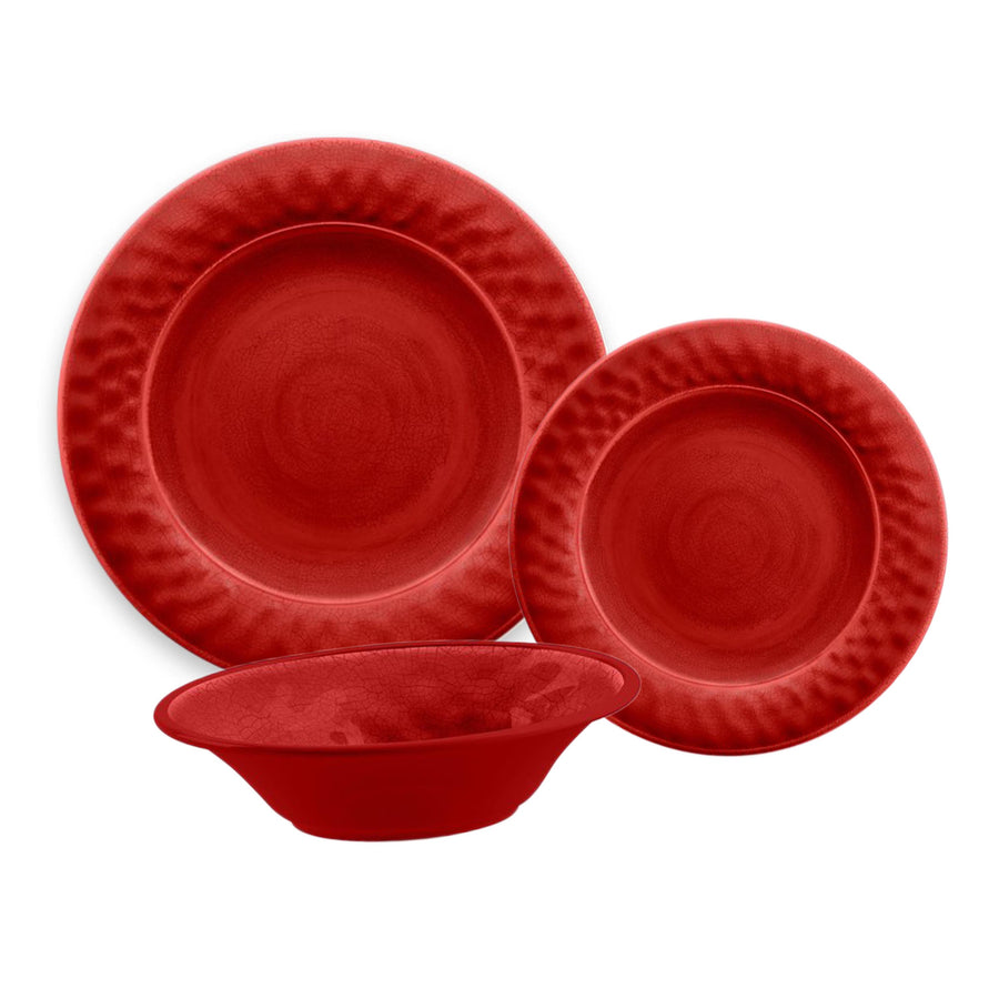 This elegant, crackle glaze, red dinner set is perfect for any adventurous and outdoor loving household. Containing dinner plates, side plates and bowls, all with break resistant features, it is ideal to either use when camping or for an alfresco dinner.