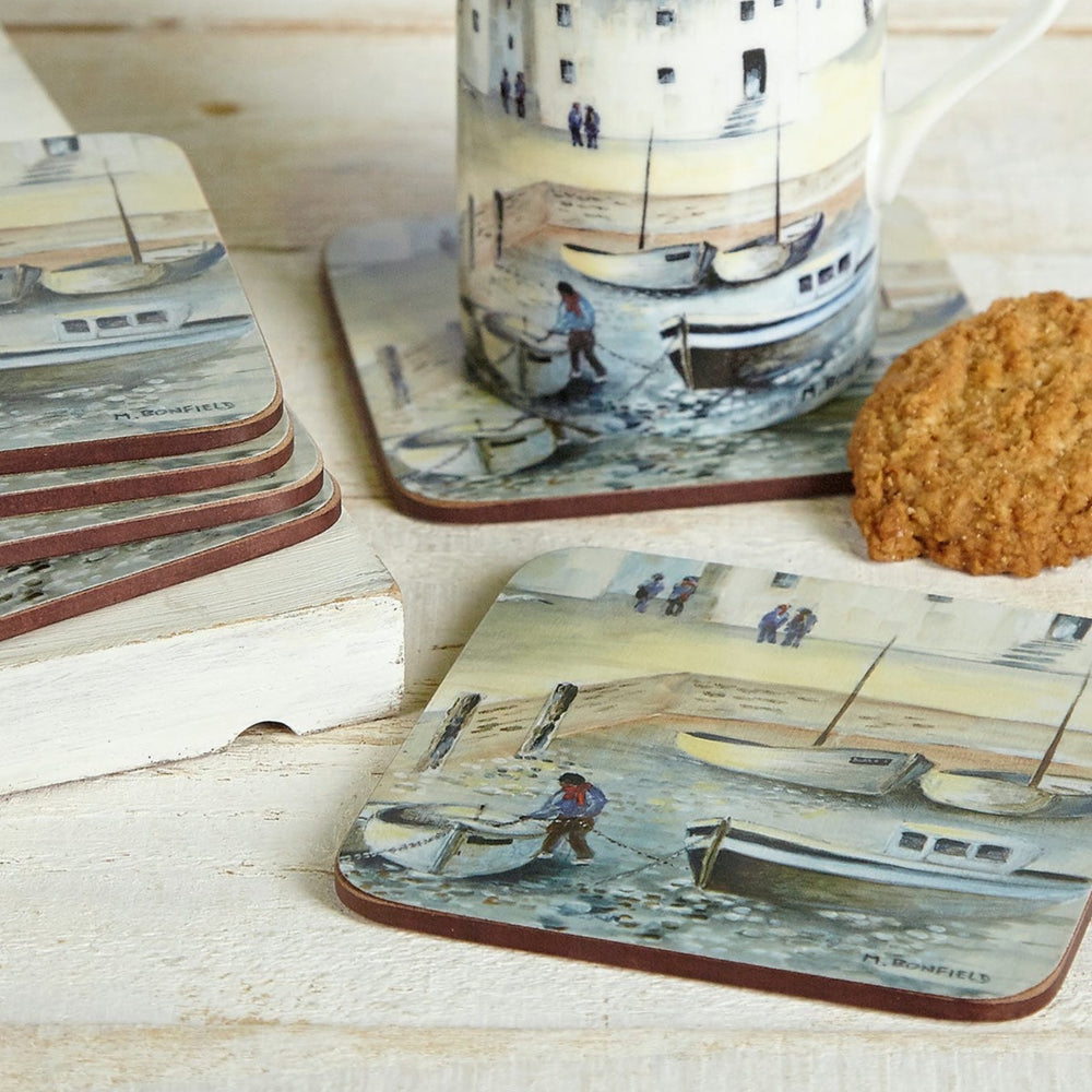 Designed for those that love the quaintness of an English town - this picturesque artistic depiction features a Cornish harbour brimming with life and charming sights like boats, the sea and birds with soft palette colours.