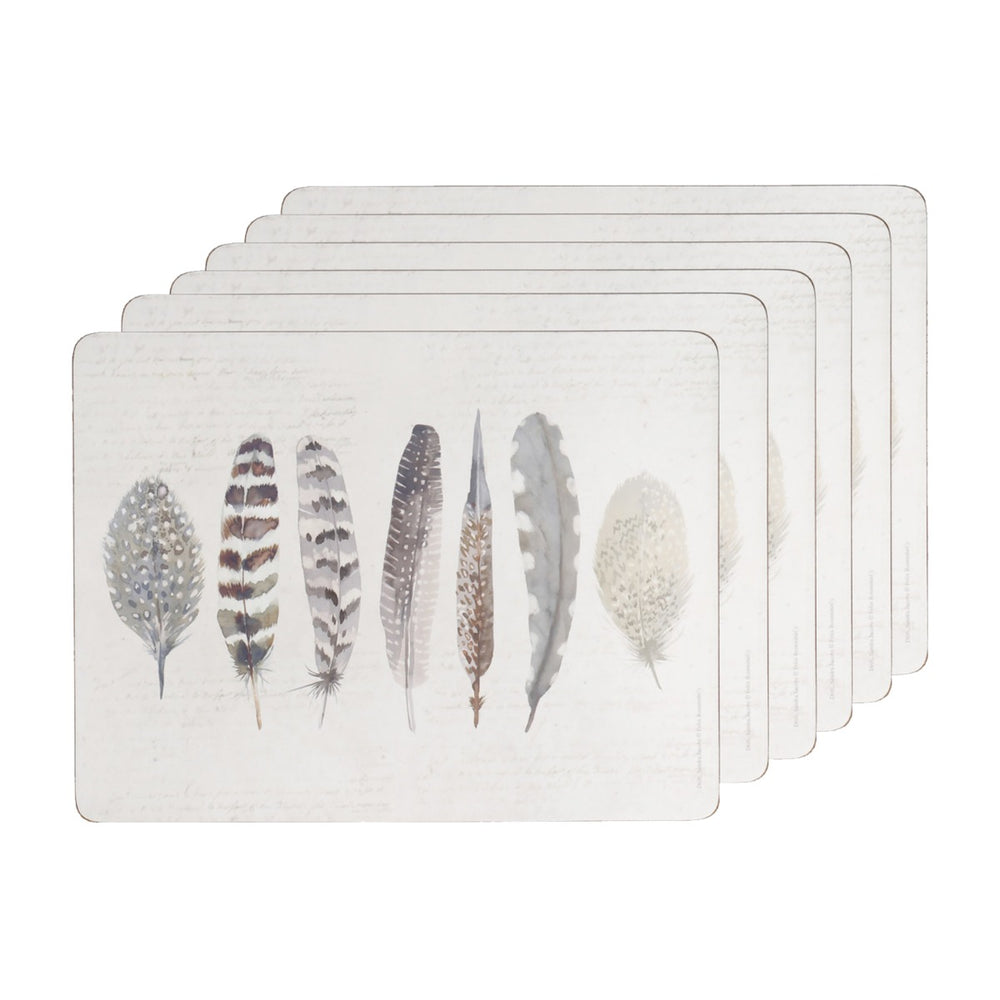 Add some pretty décor to your dinner table with this delicate design from Creative Tops. Featuring a gorgeous feather print, this set of six placemats are ideal for use in your kitchen or dining room and has a lacquered finish with a cork backing which is heat resistant to 120 degrees.