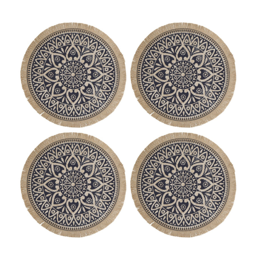 This set of four stunning circular table mats add an elegant touch to your dining experience! Crafted from woven fibres, these placemats feature an intricate mandala design - just the thing for enhancing your table setting. With a generous size, these placemats offer heat resistance up to 30 degrees, and will protect your surfaces from scratches.