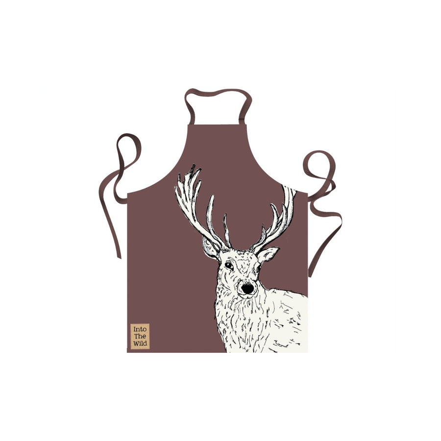 Add a touch of nature’s style and wild charm to cooking and baking with this Into The Wild kitchen apron. Made of 100% cotton, this quality apron features a stylized black & white sketch of a stag set against a merlot-coloured canvas– creating an attractively striking contrast.
