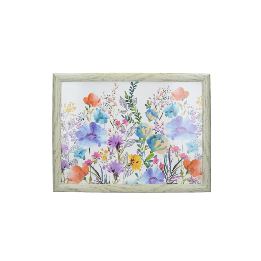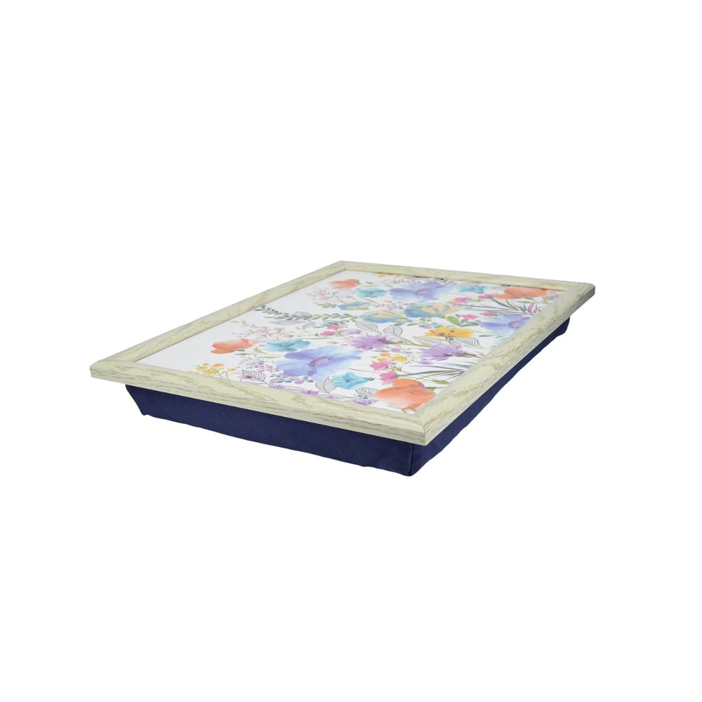 Get arty in your home with this stylish design from KitchenCraft. Featuring a beautiful watercolour and lined illustrated floral print, this lap tray is perfect for dinners in front of the TV, crafts and work based activities. With a cream wood-effect border and a bold blue cotton cushion covering with comfortable bean bag interior.