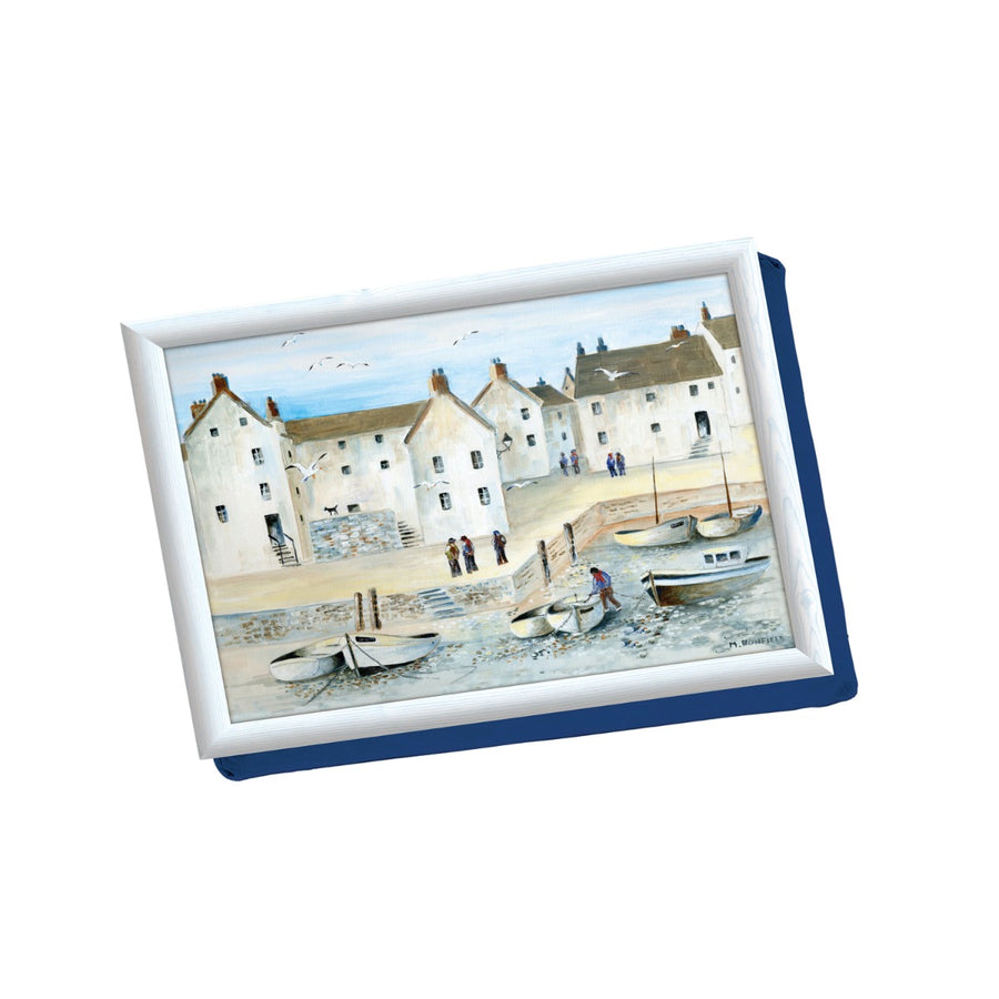Designed for those that love the quaintness of an English harbour town - This picturesque artistic depiction features a Cornish harbour town brimming with life and charming sights like boats, seagulls and old age buildings with soft palette colours.