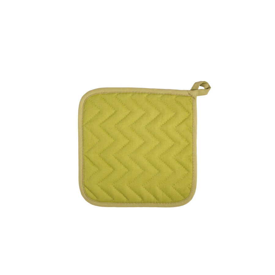 This square pot grab is a light green colour and is made from 100% cotton. It features a polyester filling to protect you from hot pots and pans, and comes with a built in hanging loop to offer an easy storage solution.