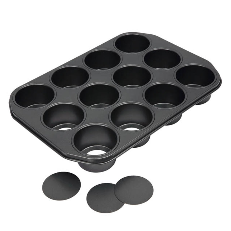Get baking with this non-stick dessert pan! Each of the twelve cups in the pan feature a loose base, perfect for easily removing desserts from the pan after being baked or chilled - depending on the type of delicious treat you decide to make!
