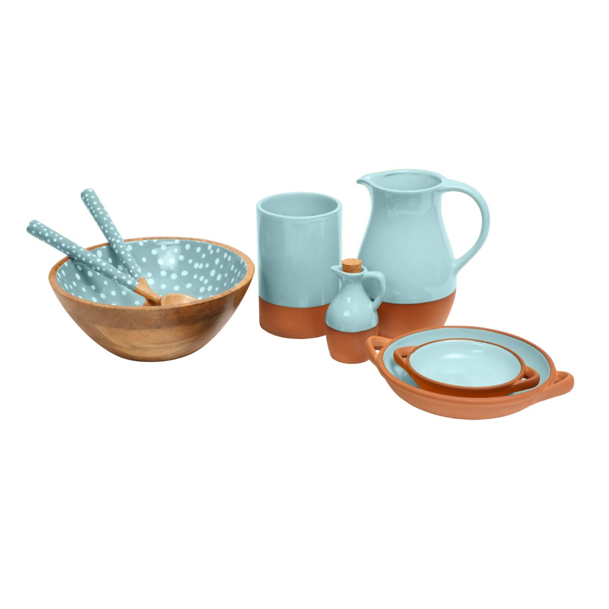 Drawing inspiration from the captivating town of Sintra in Portugal, this wine cooler has an enchanting duck egg blue hand-glazed finish, showcasing a seamless fusion of sustainability and elegance. What's more, it is made from naturally sourced terracotta, which is a highly recyclable and sustainable material - perfect as an alternative to plastic serveware!