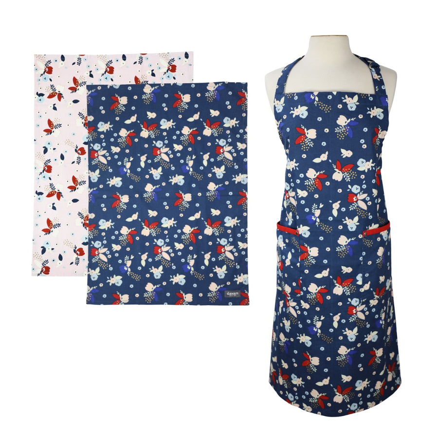Dexam Indigo Bloom Apron & Tea Towels Set