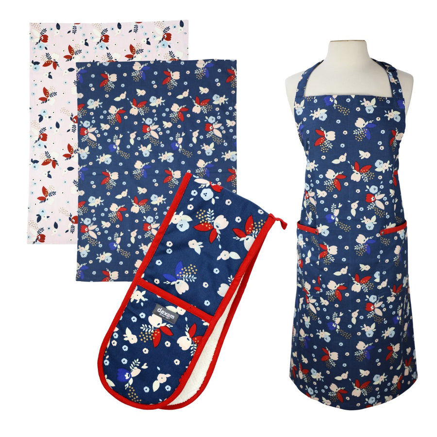 Dexam Indigo Bloom Apron, Tea Towels & Double Oven Glove Set