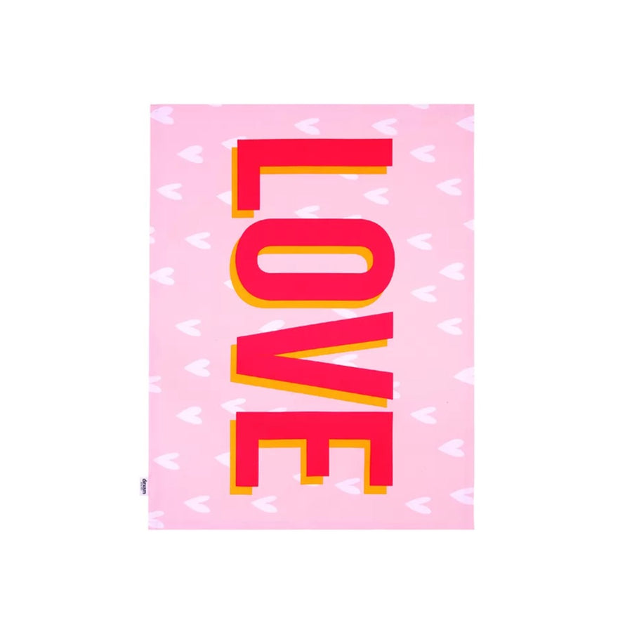 Scattered heart-printed tea towel. This kitchen drying towel is made from high quality organic cotton
