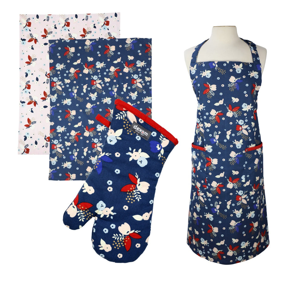Dexam Indigo Bloom Apron, Tea Towels & Oven Gauntlet Set