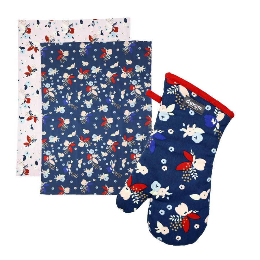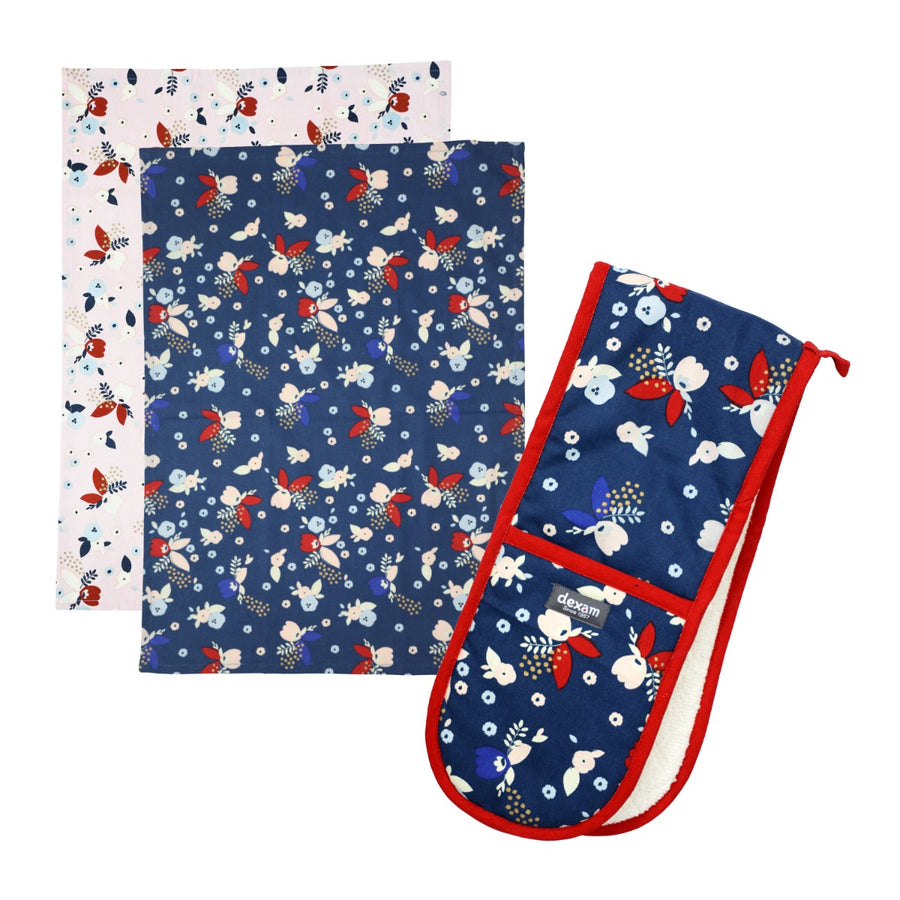 Dexam Indigo Bloom Tea Towels & Oven Gauntlet Set