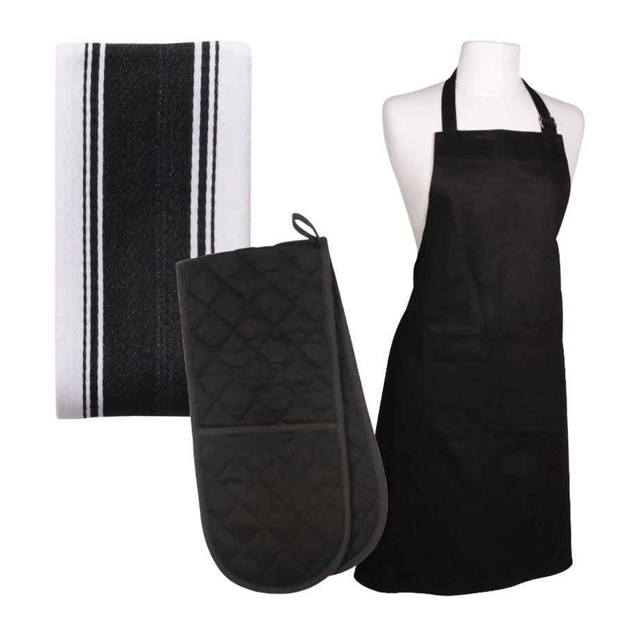 Dexam Love Colour Apron & Double Oven Glove Set - True Black