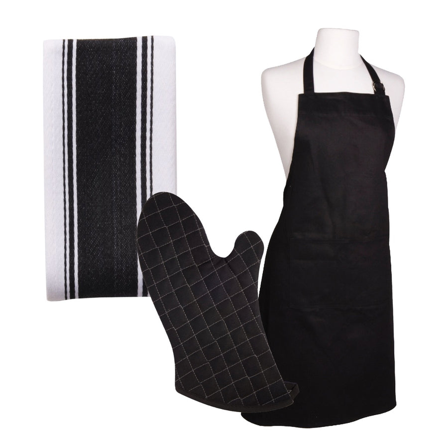 Dexam Love Colour Apron, Tea Towel & Oven Gauntlet Set - True Black