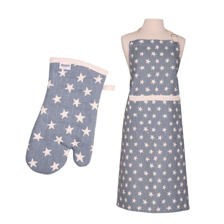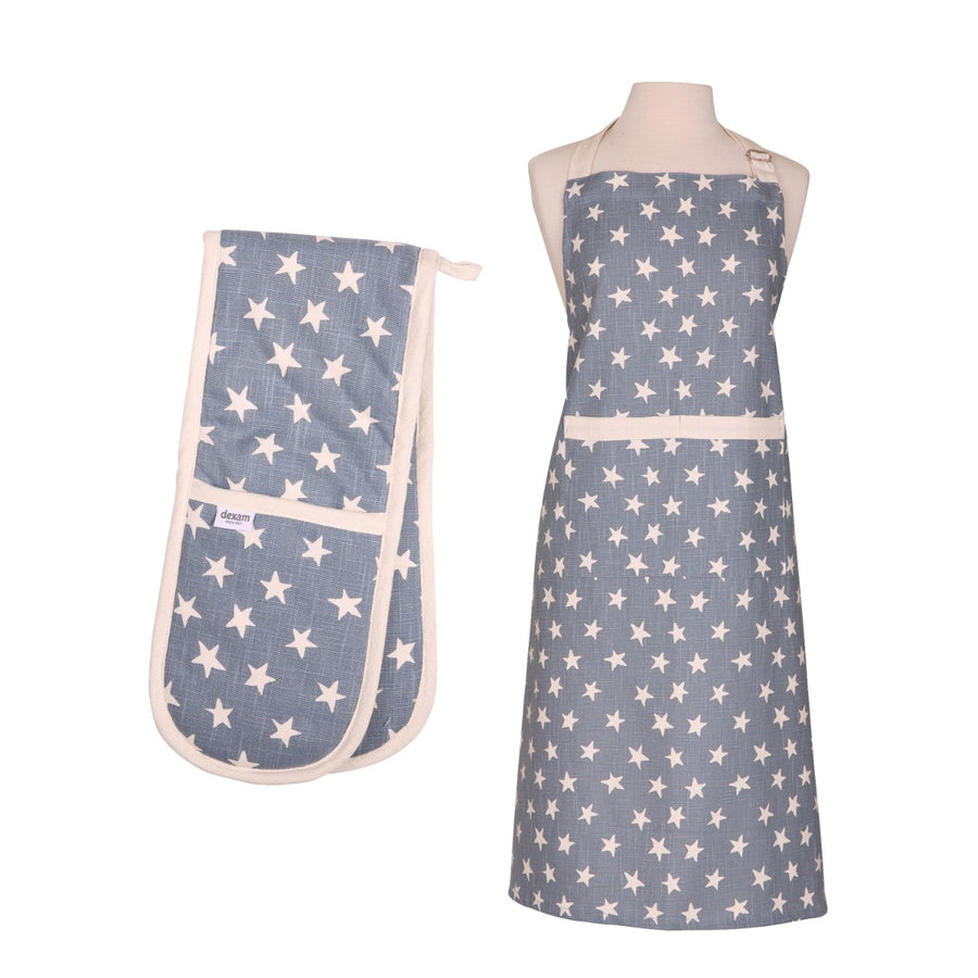 Dexam Organic Cotton Apron & Oven Gauntlet Set - Blue Stars