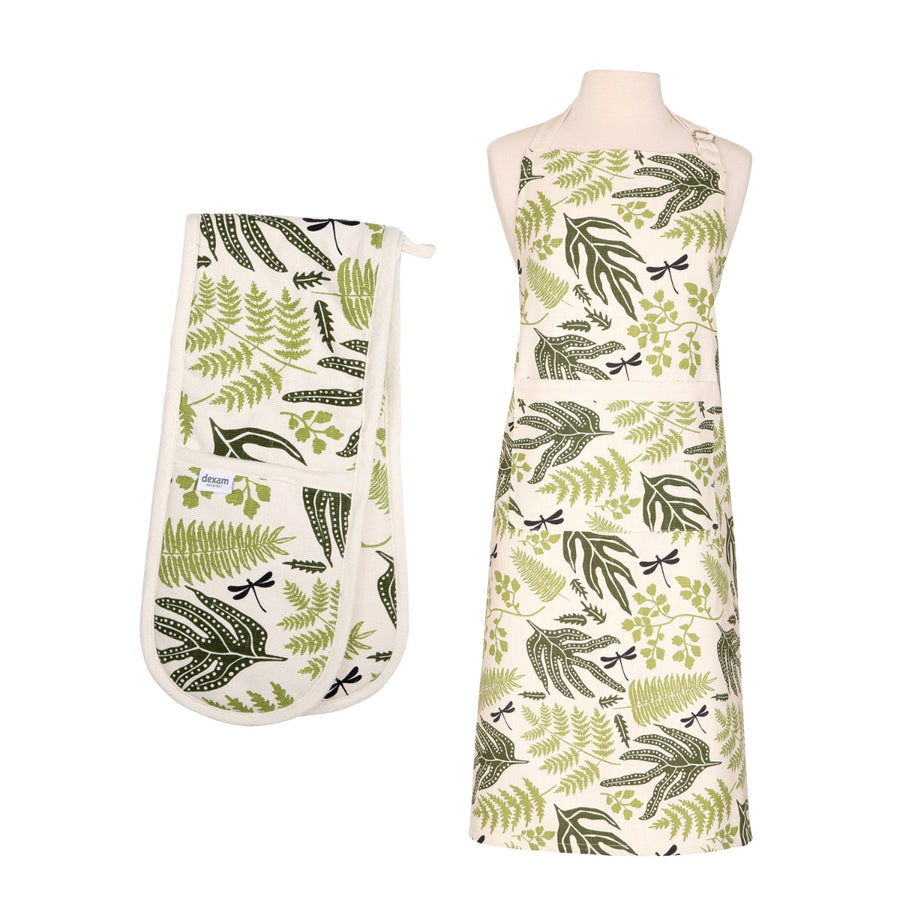 Dexam Organic Cotton Apron & Oven Gauntlet Set - Fern