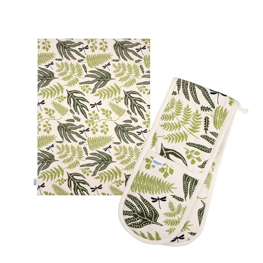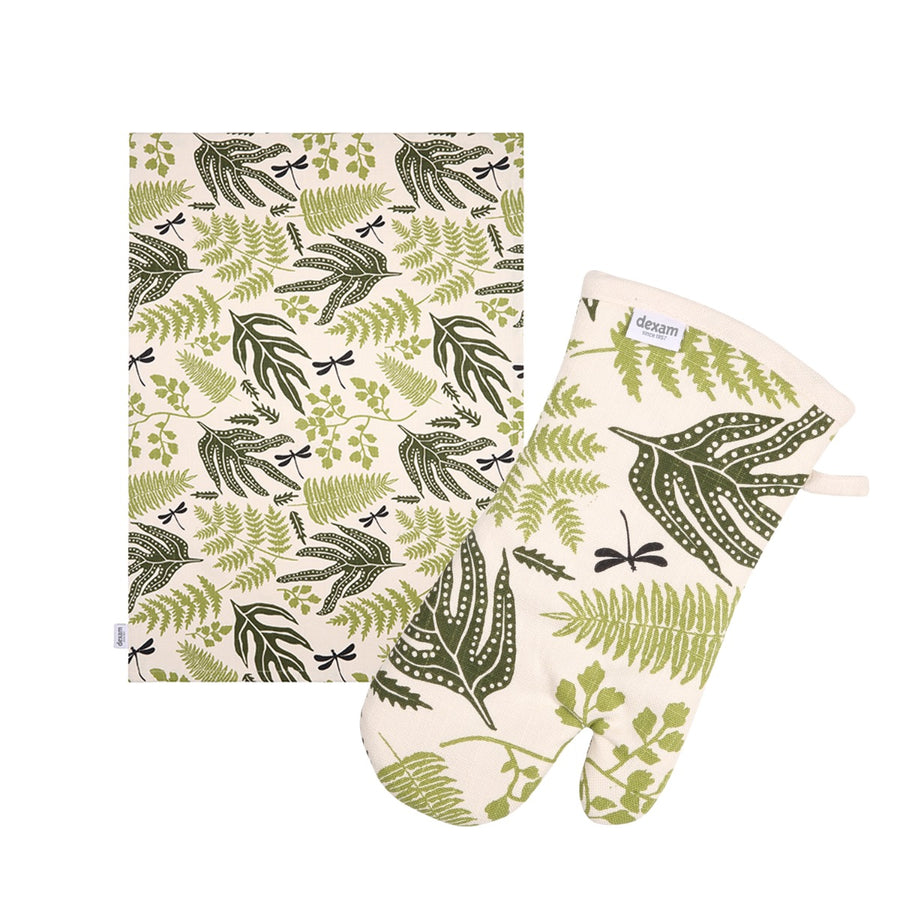 Dexam Organic Cotton Tea Towel & Oven Gauntlet Set - Fern