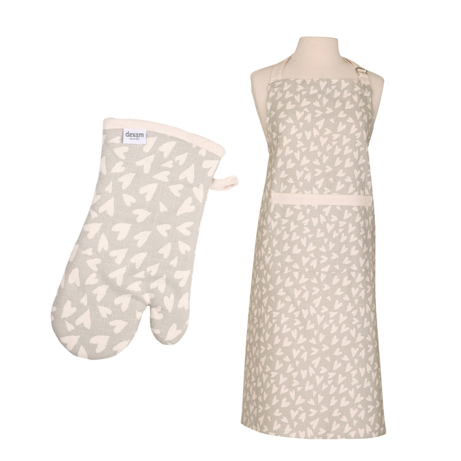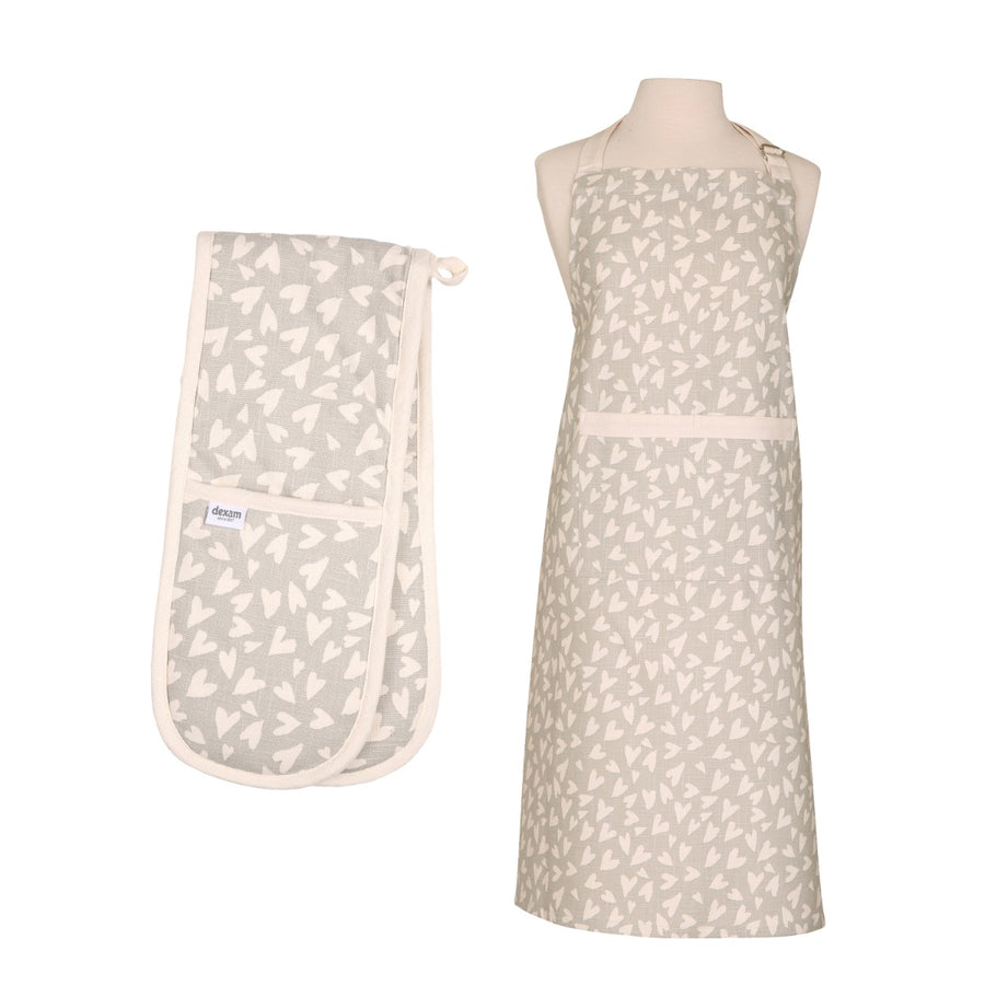 Dexam Organic Cotton Apron & Oven Gauntlet Set - Grey Hearts