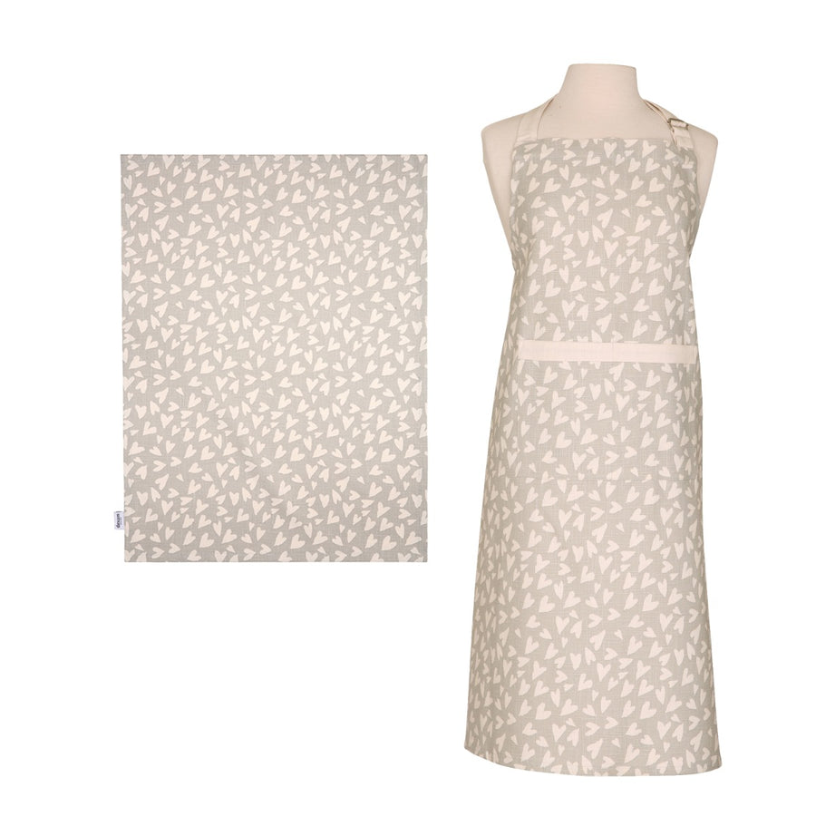 Dexam Organic Cotton Apron & Tea Towel Set - Grey Hearts