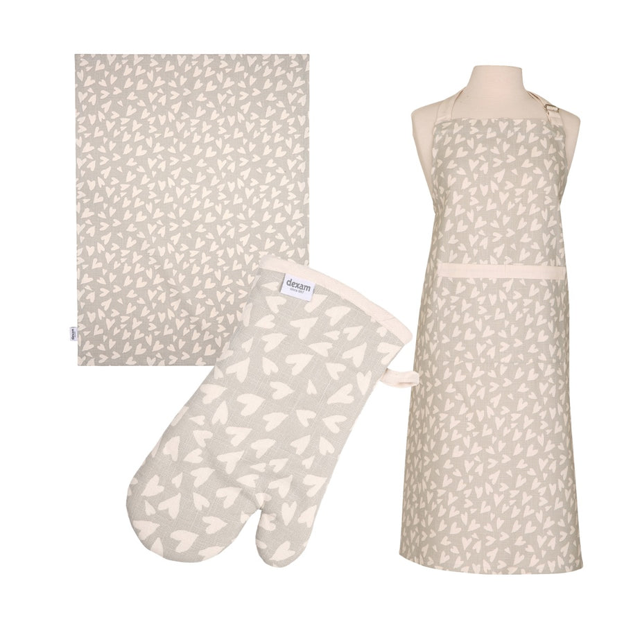 Dexam Organic Cotton Apron & Double Oven Glove Set - Grey Hearts