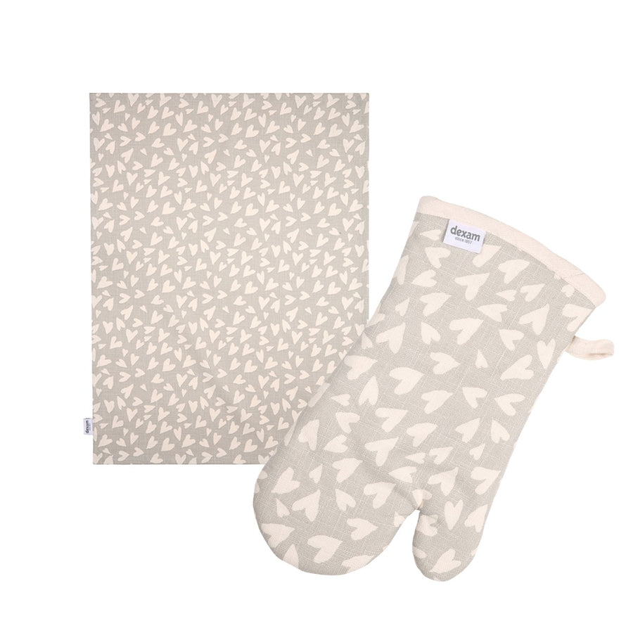 Dexam Organic Cotton Tea Towel & Oven Gauntlet Set - Grey Hearts