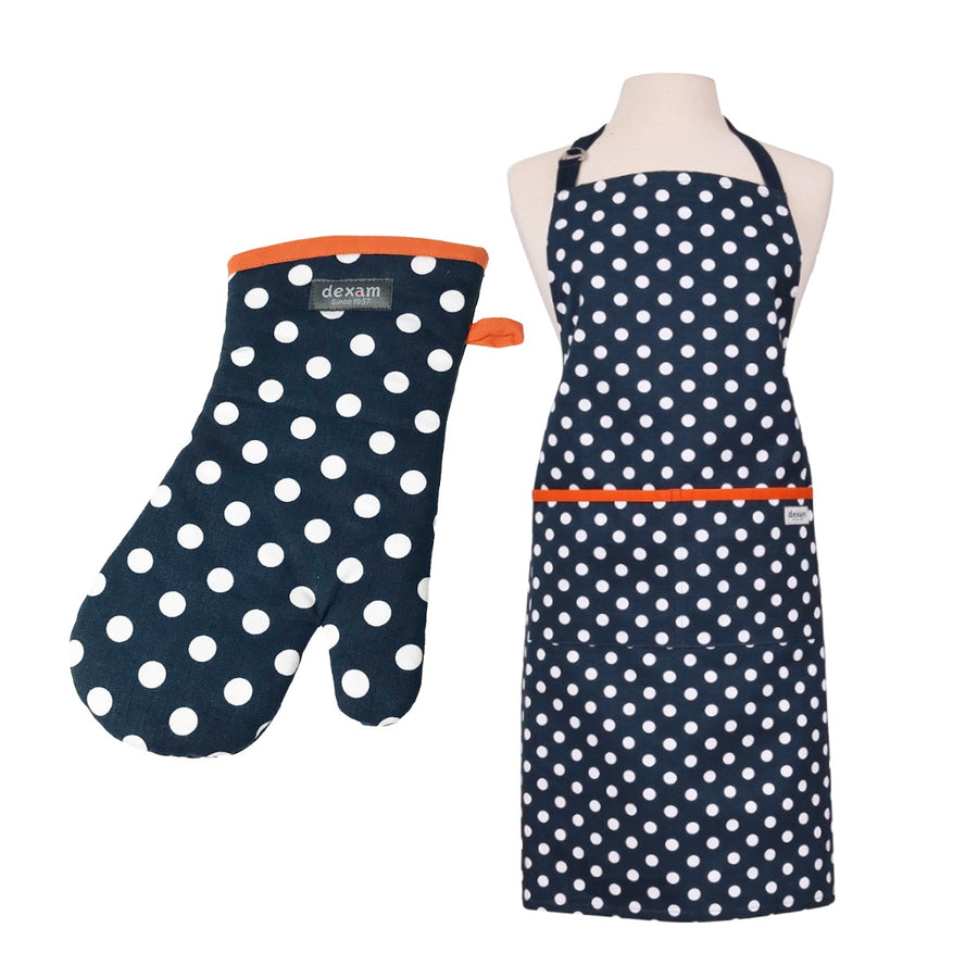 Dexam Polka Apron & Oven Gauntlet Set - Indigo