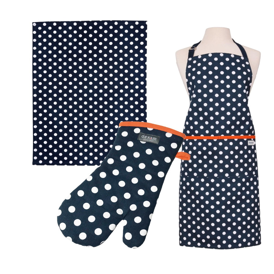 Dexam Polka Apron, Tea Towel & Oven Gauntlet Set - Indigo