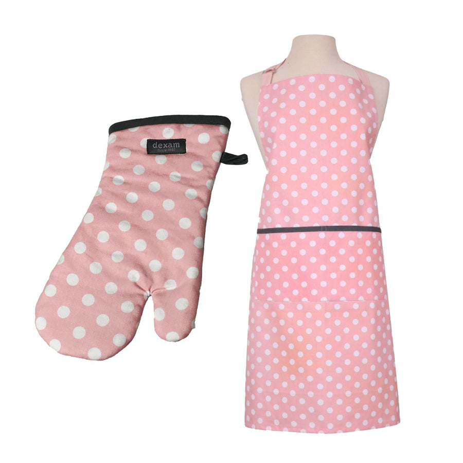 Dexam Polka Apron & Oven Gauntlet Set - Blush Pink