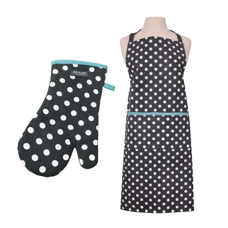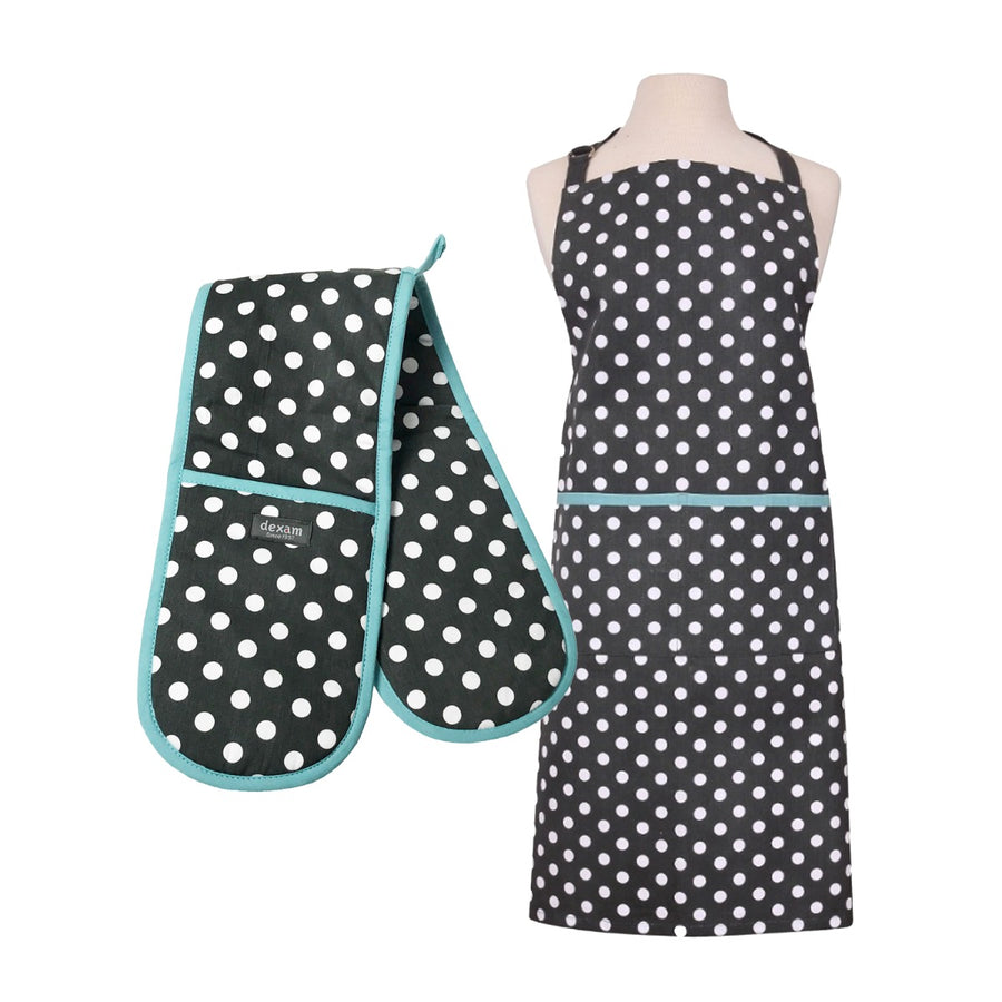 Dexam Polka Apron & Oven Gauntlet Set - Slate Grey