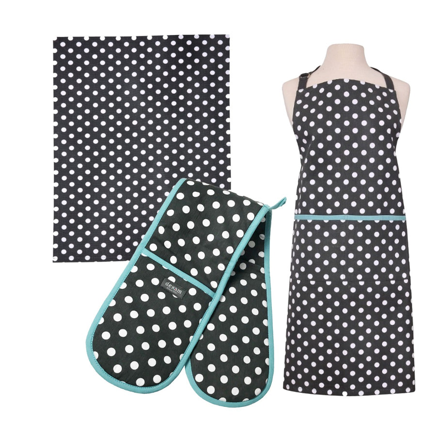 Dexam Polka Apron, Tea Towel & Double Oven Glove Set - Slate Grey